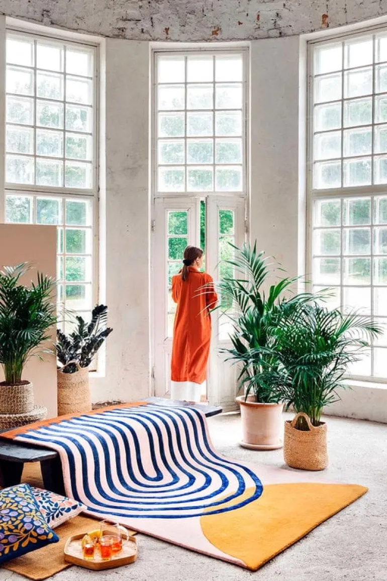 Atrium-mattan från Finarte har ett abstrakt mönster inspirerat av vackra arkitektoniska detaljer som fångat blicken på designern, Marianne Huotari från Studio Smoo, under hennes resor: bågar och marmorfontäner på gårdsplaner. Tillverkad av tuftad ull och viskos för att den känsliga mattan ska ge en lyxig känsla under dina fötter.