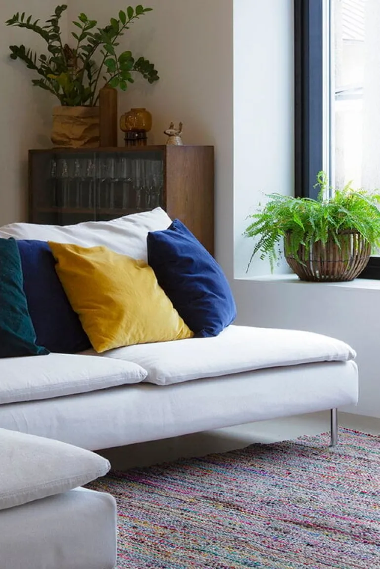 Finartes matta Kuhmo kombinerar den finska traditionen med trasmattor med Indiens härliga färgpalett. Mattas tillverkas med traditionella finska vävtekniker, men materialet kommer från överblivna tygrester från den indiska textilindustrin.