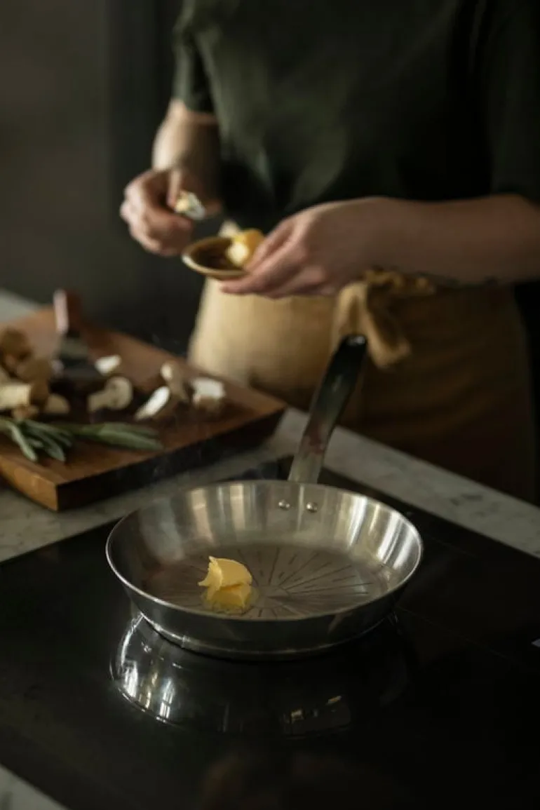 Stekpannan All Steel Pure, från Fiskars, är ett miljövänligt och slitstarkt hjälpmedel i köket. Den högkvalitativa wokpannan är tillverkad av 90% återvunnet rostfritt stål och har en tidlös design, ett unikt mönster och ett säkert handtag. Tack vare sin icke-belagda bas i tre lager värms pannan upp snabbt och jämnt. All Steel Pure köksredskap är helt fria från plast, tål diskmaskin och ugn upp till 270 °C, och passar till alla spishällar.