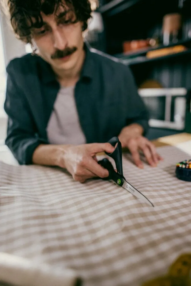 Fiskars ReNew-saxar är tillverkade av återvunna och återvinningsbara material: bladen är tillverkade av återvunnet rostfritt stål och handtagen av biokompositmaterial som består av återvunnen plast och förnybar cellulosa. ReNew-saxarna tillverkas hållbart i Finland och deras kvalitet, komfort och prestanda säkerställs genom att varje enskild sax testas för hand.