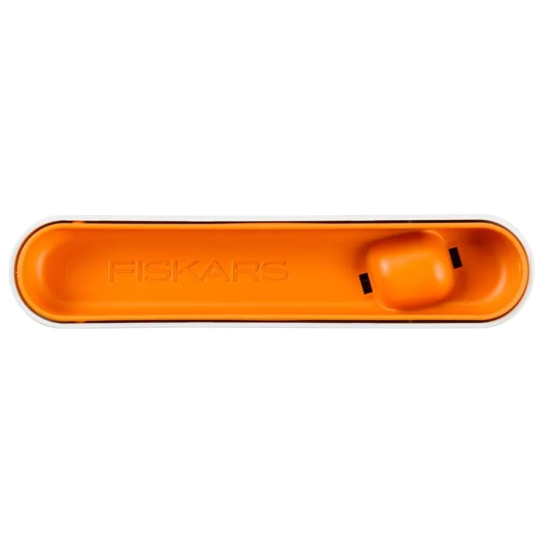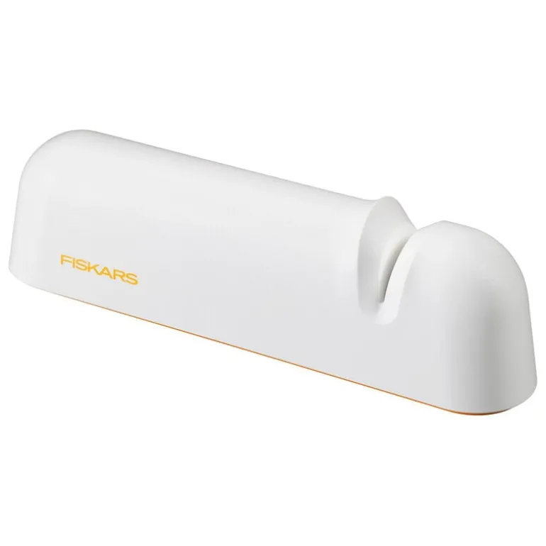 Fiskars Functional Form Roll-Sharp knivslip är ett praktiskt verktyg för att slipa köksknivar. Knivslipen, som passar både höger- och vänsterhänta, är utrustad med en integrerad keramisk slipsten och en silikonring som håller basen på plats under slipningen.