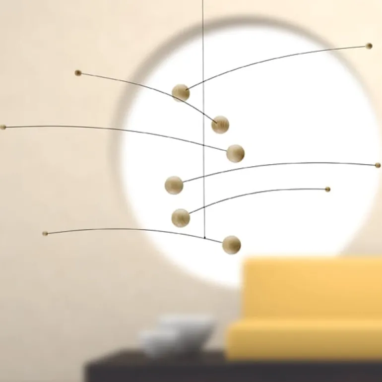 Flensteds mobiler tillverkas för hand i Danmark och är unika och snygga inredningsdetaljer i hem och i offentliga utrymmen. När mobilen svävar i luften väcker den uppmärksamhet, intresse och kreativitet hos både barn och vuxna. Varje Flenstad-mobil är konstruerad på ett sådant sätt att den alltid rör sig tyst och lugnt med luftströmmarna.