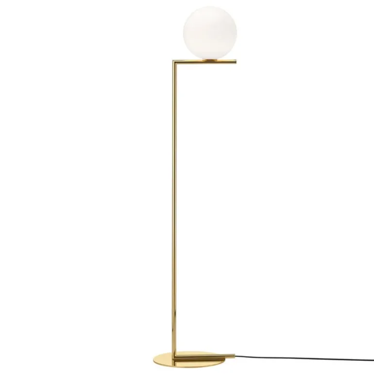 Golvlampan IC F1 från det italienska märket Flos är en del av IC-kollektionen designad av Michael Anastassiades 2014. Armaturen kännetecknas av en kombination av industriell enkelhet och elegant symbolik. Den består av en kantig metallram och en rund diffusor i vitt opalglas som filtrerar ljuset på ett rent och mjukt sätt.