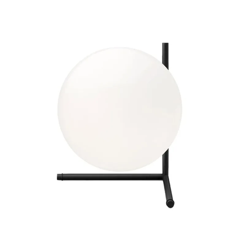 Bordslampan IC T2, från det italienska märket Flos, är en del av IC-kollektionen som designades 2014 av Michael Anastassiades. Lampan karaktäriseras av en kombination av industriell enkelhet och elegant symbolism. Den består av en vinklad metallram målad i tidlös svart, samt ett klot i vitt opalglas som ger ett rent, mjukt sken.