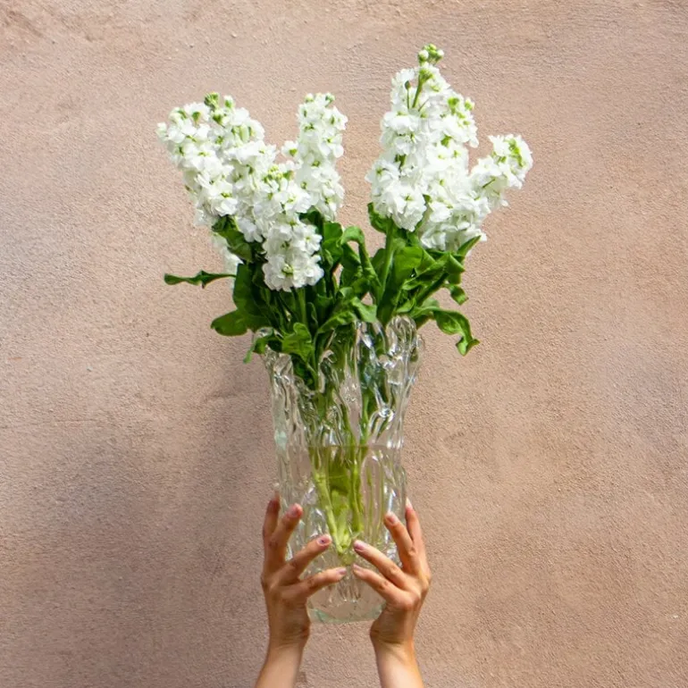 FÓLK Reykjavíks vas Lava är inte bara fascinerande vacker, den är även tillverkad på ett hållbart sätt – 100 % återvunnet glas används i produktionen av denna enastående vas. Det är inte så förvånande att det svenska designkollektivet NAVET, som skapade den underbara glasvasen, specialiserar sig på att använda överblivna material från tillverkningsprocessen.
