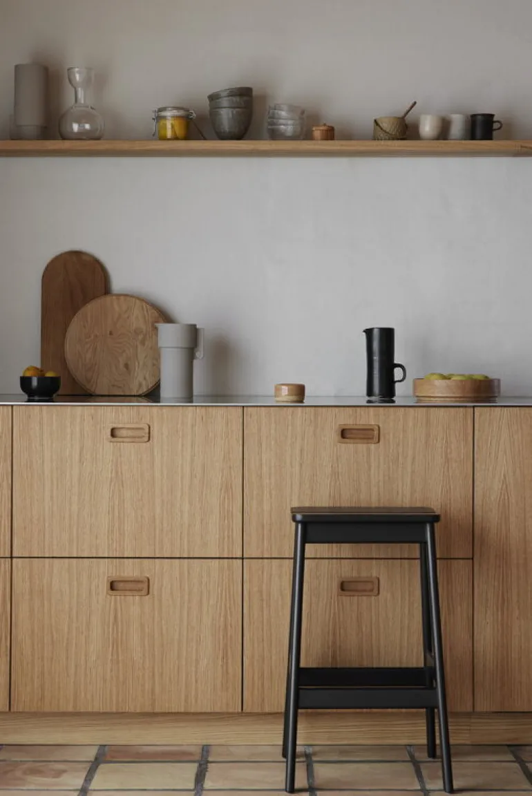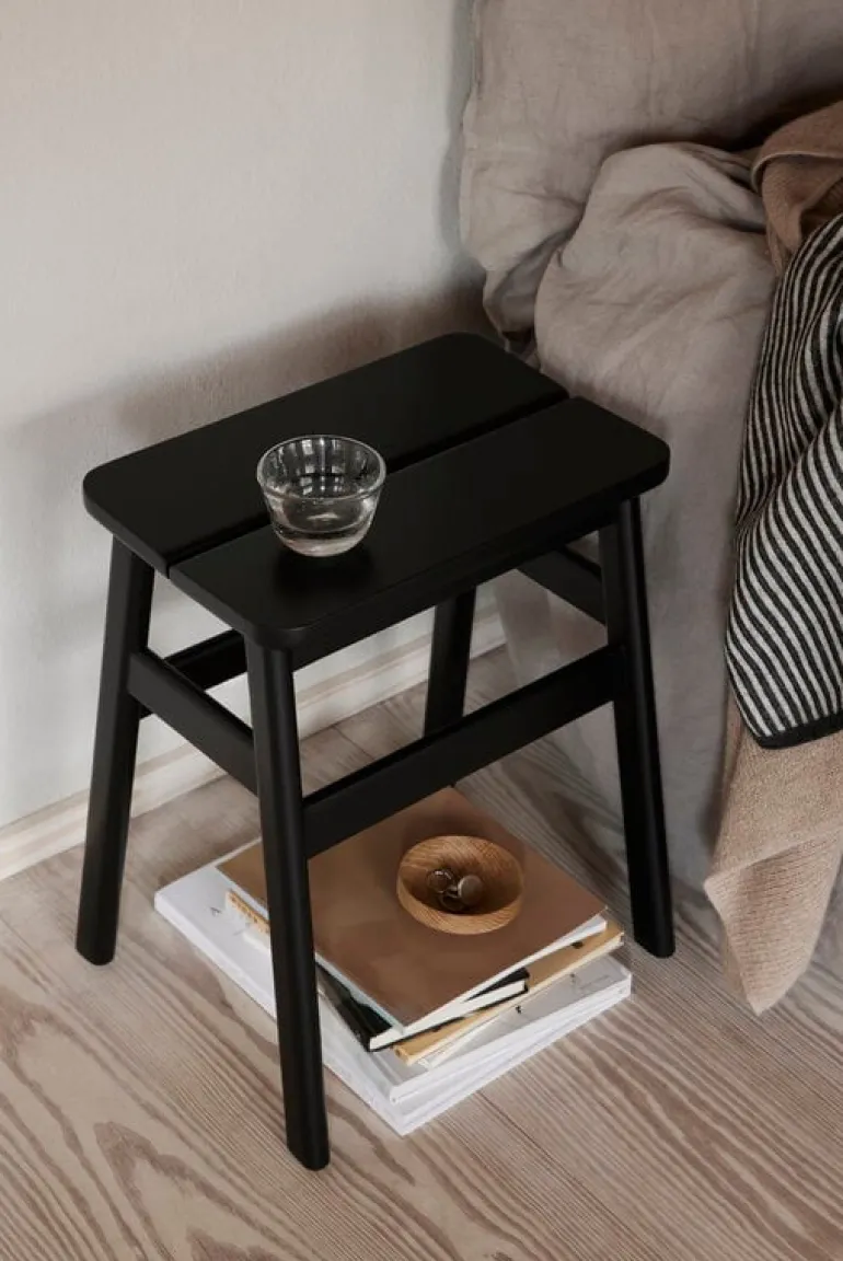 Pallen Angle från Form & Refine har en elegant design som passar i alla rum. Formgivarna i Herman Studio hade som mål att skapa en otroligt bekväm stol som också skulle se snygg ut – därför är sitsen på pallen lätt vinklad, vilket gör den extra bekväm och är dessutom en fascinerande visuell designdetalj. Pallen är tillverkad av svartbetsad bok.