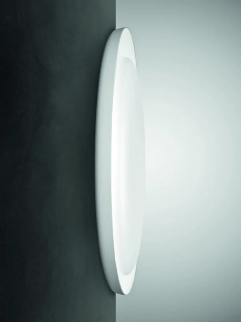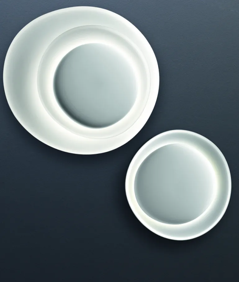 Bahia Mini, från det italienska belysningsmärket Foscarini, består av tre överlappande, något asymmetriska polykarbonatplattor. Bakom plattorna finns en dimbar LED-enhet som ger ett mjukt, bländfritt sken som reflekteras från de vita ytorna. Bahia, som är designad av Paolo Lucidi och Luca Pevere, kan användas som vägglampa eller taklampa, och den ser också fantastisk ut i kluster med flera armaturer.