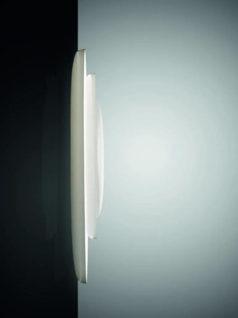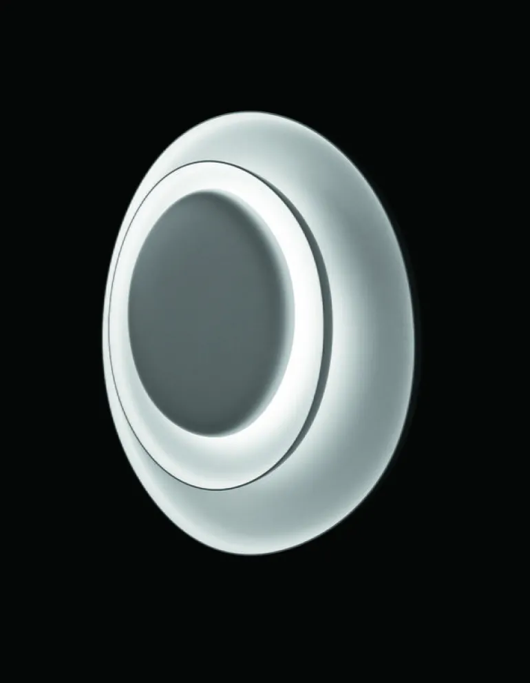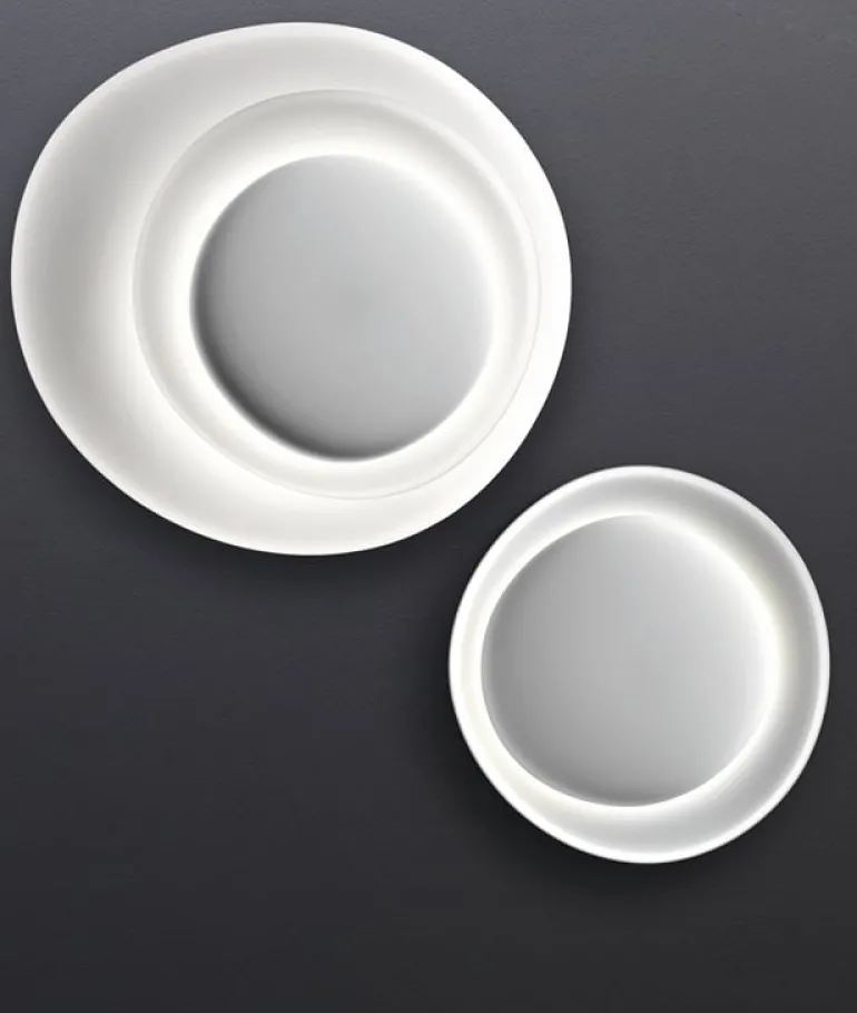 Bahia, från det italienska belysningsmärket Foscarini, består av tre överlappande, något asymmetriska polykarbonatplattor. Bakom plattorna finns en dimbar LED-enhet som ger ett mjukt, bländfritt sken som reflekteras från de vita ytorna. Bahia, som är designad av Paolo Lucidi och Luca Pevere, kan användas som vägglampa eller taklampa, och den ser också fantastisk ut i kluster med flera armaturer.