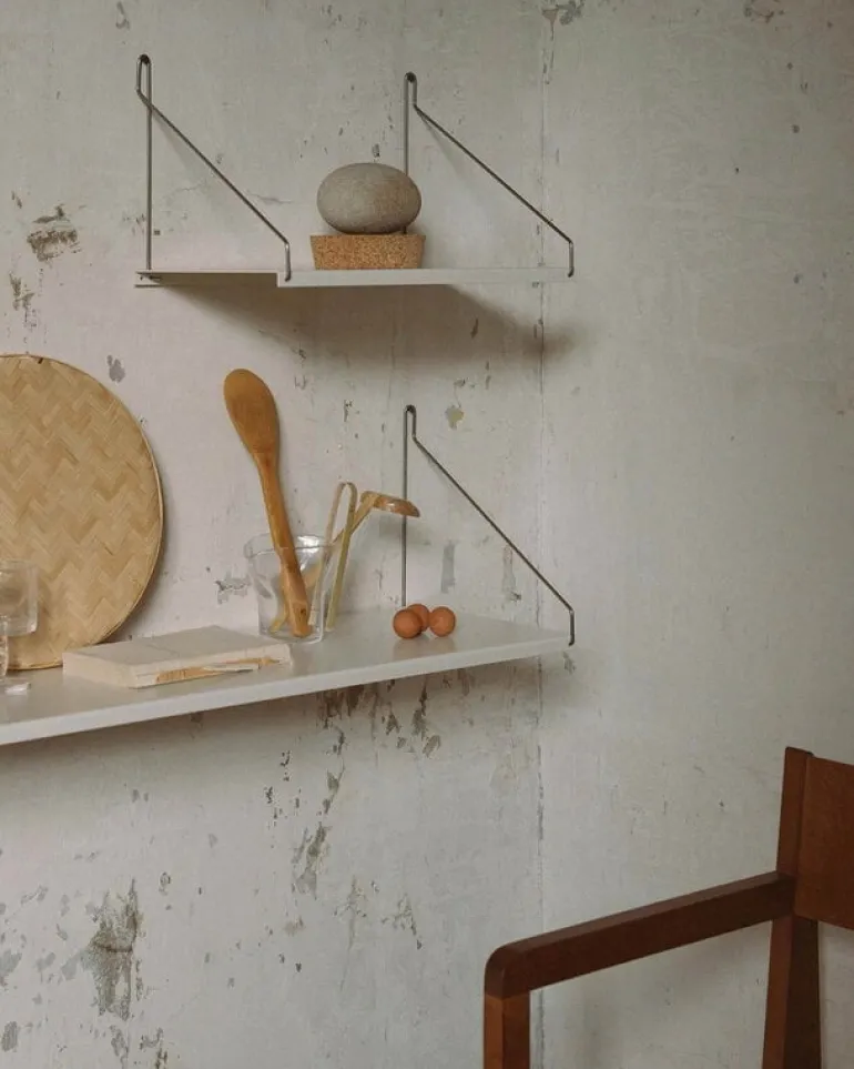 Framas vägghylla D20 är en vacker nytolkning av skandinaviska hyllor från 1950-talet. Hyllan, som är gjord av pulverlackerat stål och hålls uppe av två eleganta konsoler, visar mer än gärna upp dina favoritsaker på väggen. Den enkla och eleganta designen gör hyllan till ett perfekt komplement till olika utrymmen, från kök till kontor och vardagsrum.