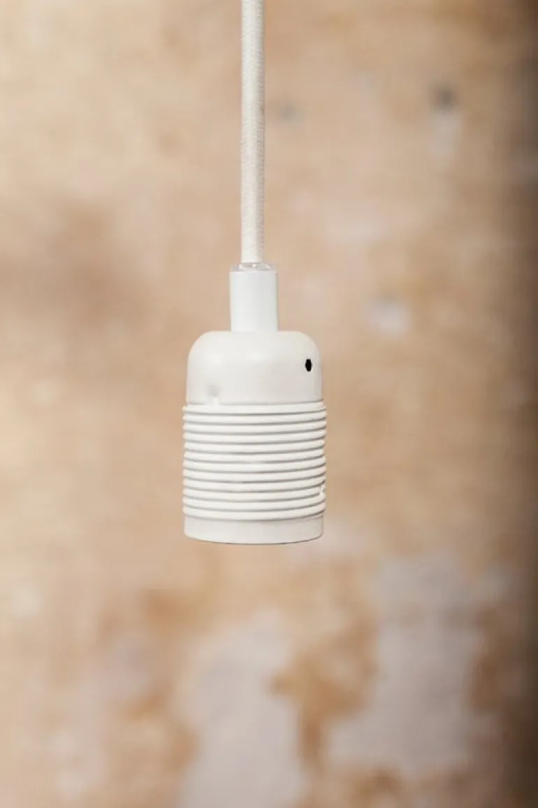 Pendellampan E27, från Frama, har en industriell design som består av en enkel svart armatur i krom och en vit sladd i textil. Som namnet antyder har sockeln huvudrollen hos denna minimalistiska lampa. Utseendet kan enkelt ändras genom att byta glödlampa till någon med annan storlek och form. E27-pendellampan är perfekt som självständigt inslag i interiören eller i grupp om flera lampor.