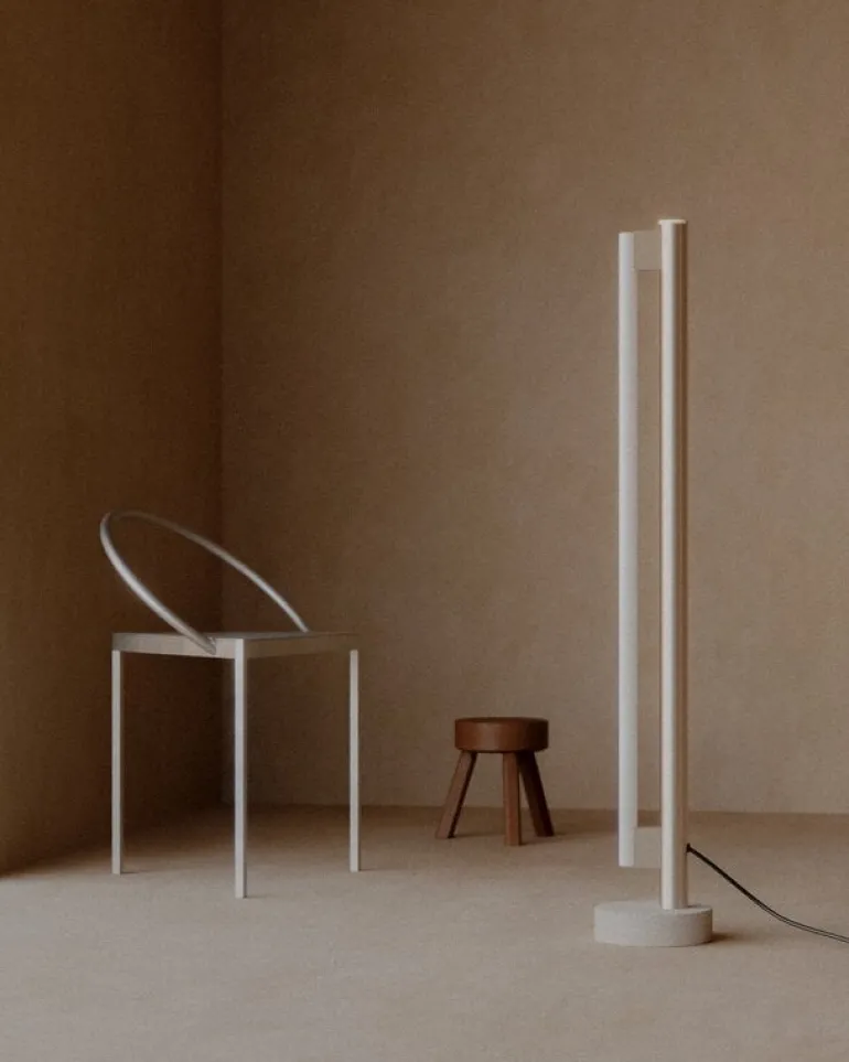Eiffel Single är en minimalistisk lampa från Frama. Den designades 2019 av Krøyer-Sætter-Lassen och består av en lampfot i travertin, en stålram och en rörformad LED-ljuskälla som löper framför ramen. Ljuskällans opalglas gör att ljuset filtreras på ett milt och behagligt sätt och det reflekterar sig även vackert i lampans ram av rostfritt stål. Golvlampan Eiffel är dessutom dimbar. Ljusstyrkan kan justeras genom att vrida på den runda stålratten på ovansidan av lampan.