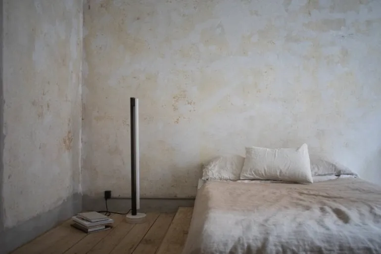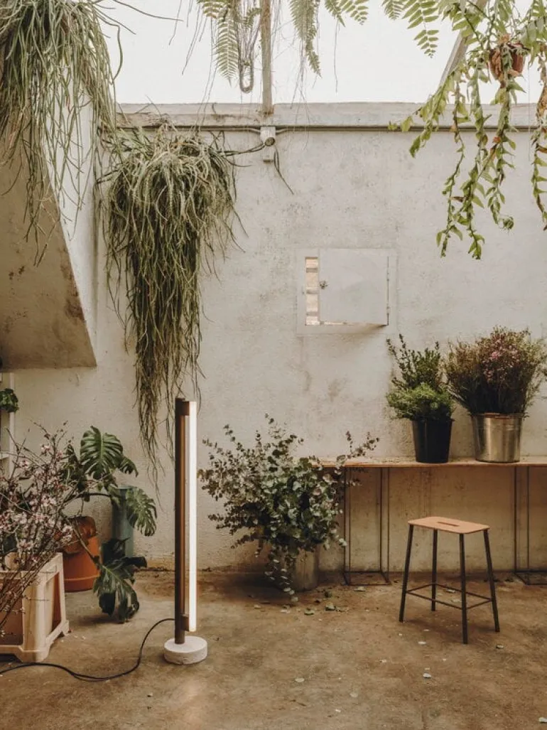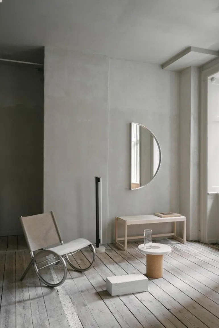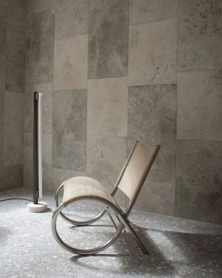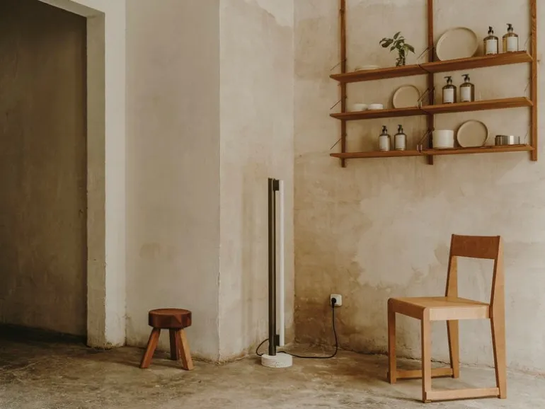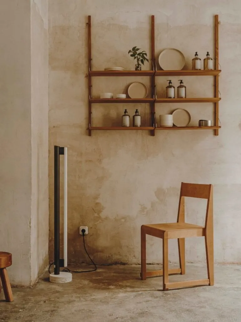 Frama’s Eiffel Single är en minimalistisk lampa designad av Krøyer-Sætter-Lassen 2019, bestående av en bas i travertin, en stålram och en tubformad LED-ljuskälla placerad framför den. Opalglaset i glödlampan filtrerar ljuset mjukt och behagligt, och det reflekteras också vackert från lampans pulverlackerade stålkaross. Eiffel golvlampan är också dimbar: dess ljusstyrka kan justeras genom att vrida på mässingsdekorationen högst upp på lampan.