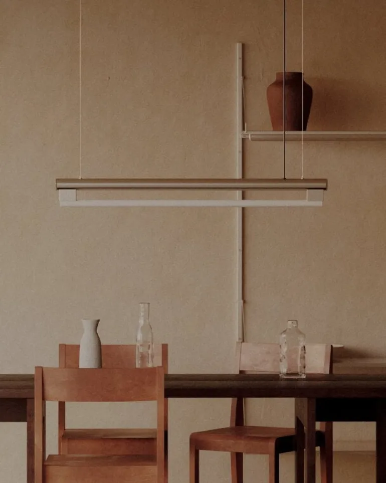 Eiffel Single från Frama är en pendellampa i minimalistisk stil, skapad 2019 av Krøyer-Sætter-Lassen. Den består av en stålram med en rörformad LED-ljuskälla undertill. Ljuskällans opalglas gör att ljuset filtreras på ett milt och behagligt sätt och det reflekterar sig även vackert i lampans ram av rostfritt stål. Pendellampan Eiffel är dessutom dimbar. Ljusstyrkan kan justeras genom att vrida på den runda stålratten på sidan av lampan.