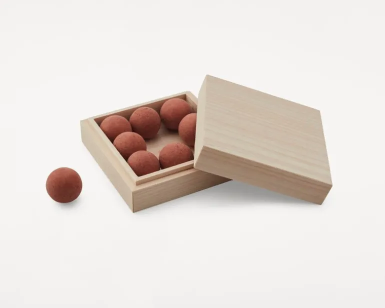 Framas diffuser From Soil To Form är en ljuvlig kombination av minimalistisk elegans och en fängslande upplevelse för alla sinnen. Diffusern är tillverkad i samarbete med den Seoul-baserade kreativa studion Be My Guest och består av en fyrkantig furulåda som döljer en överraskning under locket: inuti trälådan finns nio rundade bollar gjorda av jord, som sprider sin harmoniska doft i det omgivande utrymmet. Du kan använda bollarna individuellt genom att sprida dem i olika rum i ditt hem, eller hålla dem inbäddade i lådan för att njuta av en mer potent doft.