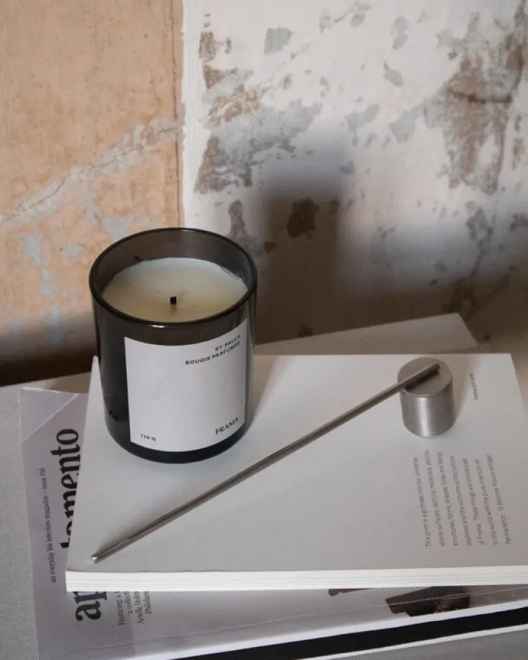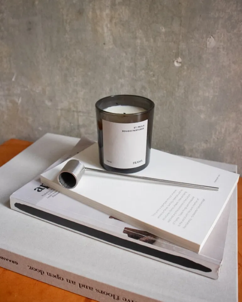 Frama’s St. Pauls Apothecary-kollektion innehåller hud- och hårvårdsprodukter gjorda av naturliga och ekologiska ingredienser samt ett urval doftljus förpackade i snygga, återanvändbara glasburkar. Ljussläckaren är ett perfekt komplement till kollektionens ljus.