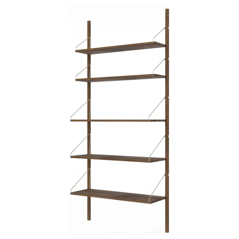 Shelf Library från Frama är en vägghylla med hyllor i massiv ek. De sitter fast i en ram med hjälp av dekorativa skuvar och konsoler. Hyllplanen går att flytta och kan sättas fast i skenorna precis där du vill ha dem, och du kan anpassa arrangemanget med olika tillbehör. Den tidlösa, mångsidiga och anpassningsbara hyllan har formgivits av Kim Richardt och passar lika bra i köket och vardagsrummet som på kontoret.