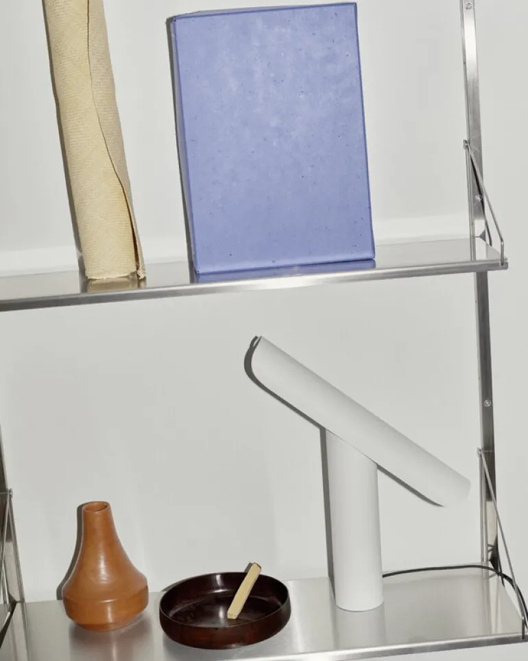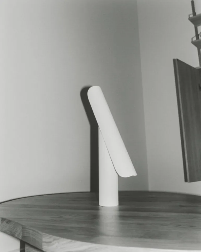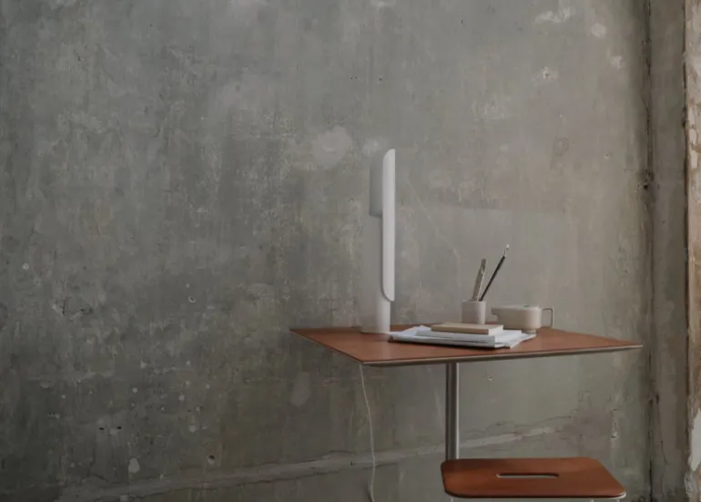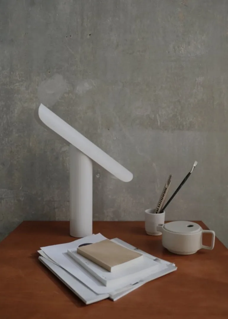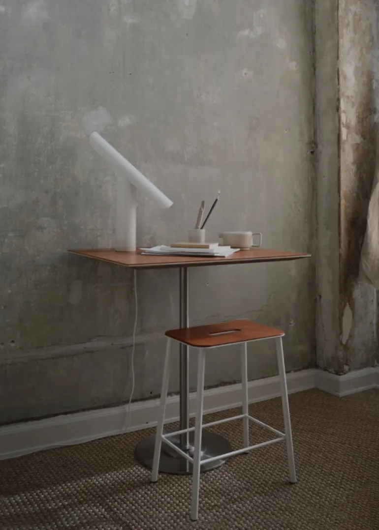 T-Lamp, från Frama och skapad av designstudion Regular Company, är en arkitektversion av den klassiska skrivbordslampan. Trots sin enkla form är T-Lamp faktiskt en förvånansvärt mångsidig armatur. Den är inte bara dimbar, utan även justerbar, då dess skärm enkelt kan vinklas parallellt mot stativet. Detta gör det enkelt att anpassa både armaturens utseende och ljus efter olika utrymmen och behov. Den minimalistiska bordslampan är tillverkad av pulverlackerat stål i vitt – en referens till traditionella skrivbordslampor.