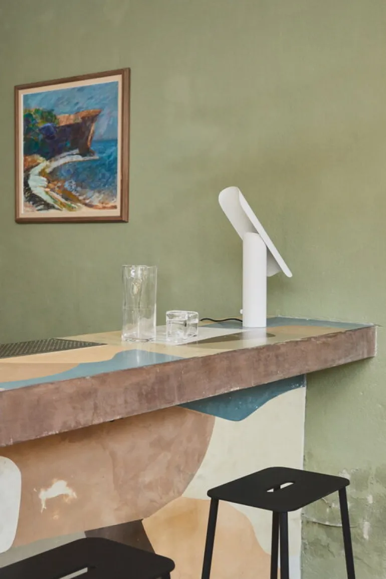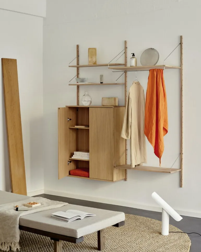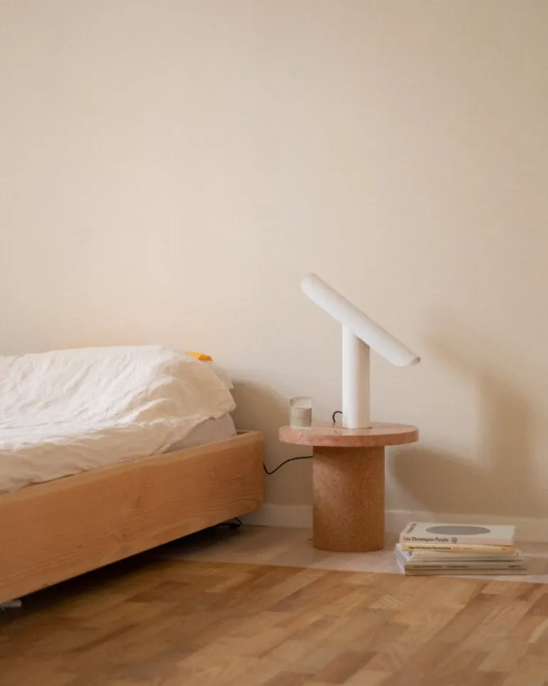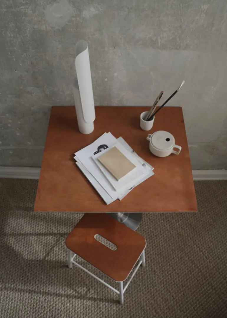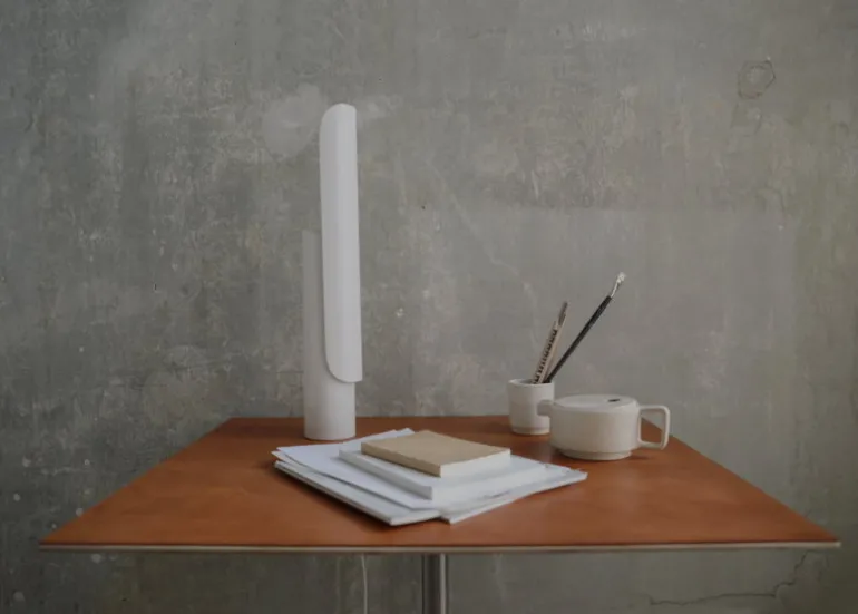 T-Lamp, från Frama och skapad av designstudion Regular Company, är en arkitektversion av den klassiska skrivbordslampan. Trots sin enkla form är T-Lamp faktiskt en förvånansvärt mångsidig armatur. Den är inte bara dimbar, utan även justerbar, då dess skärm enkelt kan vinklas parallellt mot stativet. Detta gör det enkelt att anpassa både armaturens utseende och ljus efter olika utrymmen och behov. Den minimalistiska bordslampan är tillverkad av pulverlackerat stål i vitt – en referens till traditionella skrivbordslampor.