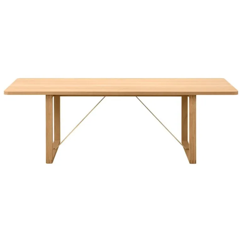 Fredericias modell BM67 är ett minimalistiskt soffbord som formgivits av en av mästarna inom dansk design, Børge Mogensen. I soffbordet kombineras träets naturliga värme med mässingens sofistikerade glans. Bordet består av en bordsskiva i massiv ek, som bärs upp av ben formade som medar som stöttas av mässingsbeslag. De senare utgör en fascinerande kontrast till designens eleganta, raka linjer och visuella harmoni. Det bästa är ändå att både det oljade ytskiktet och mässingen kommer att få en karaktärsfull patina med tiden, som ger den eleganta bordsdesignen en extra dos personlighet.