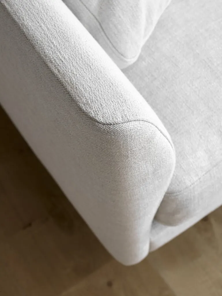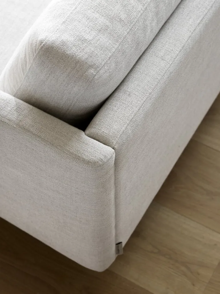 Hugo Passos har skapat designen till Calmo, som även är smart och funktionell när det gäller material: kuddarna har klädsel på båda sidor så att du enkelt kan vända dem för att få en jämn patina över tiden. De smäckra benen gör städningen enkel, eftersom du inte behöver flytta på soffan för att kunna dammsuga under den.