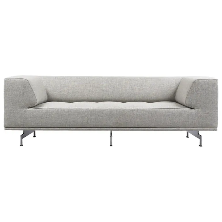 Fredericias Delphi-soffa ger lyxig elegans och genomtänkt estetik till ett vardagsrum eller lobby. Delphi-soffan har armstöd och ryggstöd som är lika höga, vilket resulterar i en inbjudande, generös och perfekt stödjande design för sittande och lounging. Den slanka metallbasen och de små kurvorna som går ner från armstöden är signaturdetaljer för den annars enkla, kuddlösa soffan.