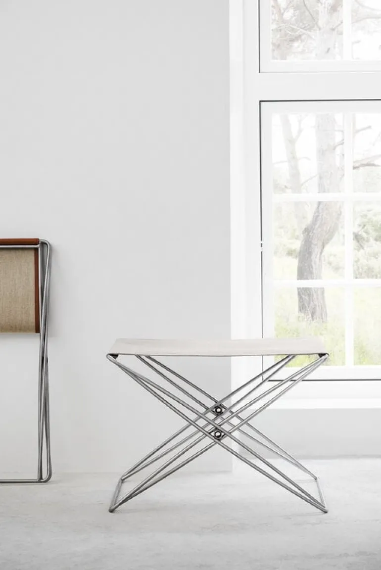 Fredericias pall JG är ett av de mest berömda verken av den danske formgivaren Jørgen Gammelgaard. Den enkla och graciösa pallen består av en sits i kanvas och ben av stänger, vilket inte bara innebär att stolen kan fällas ihop, utan medför även att formspråket blir visuellt fascinerande. Den lätta pallen, formgiven 1970, är perfekt som extra sittplats, som du enkelt kan flytta dit där den behövs.