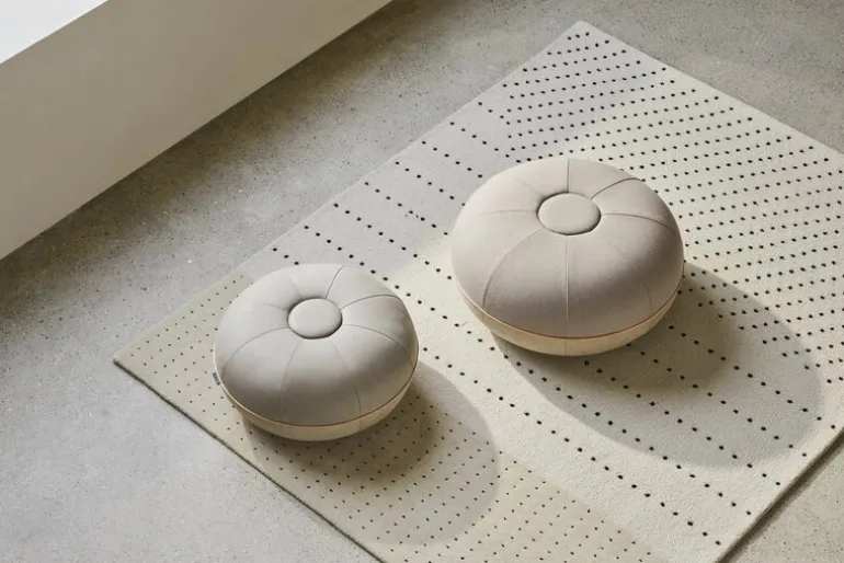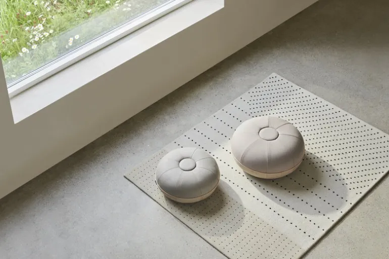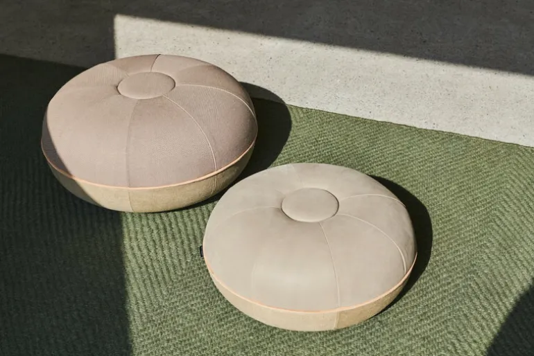Fritz Hansens puff, som designades av Cecilie Manz, passar perfekt i vardagsrummet. Sittpuffen påminner om en fransk makaron och är fylld med ull av hög kvalitet på ena sidan med naturlig hellinneväv på den andra. Den avslutas med en rund läderkant på mitten. Den multifunktionella puffen är perfekt att vila fötterna på, men kan också användas som en extra sittplats vid behov.