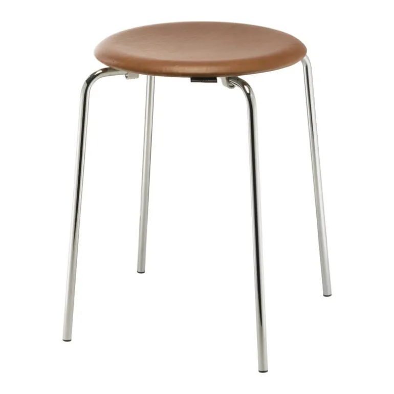 Den multifunktionella stolen Dot kan användas i köket, hallen eller på kontoret. Du väljer själv. Tack vare den lätta, stapelbara strukturen är den lätt att hämta när det behövs en extra sittplats. Pallens säte är tillverkad av läder i högsta kvalitet – man använder faktiskt det överblivna lädret från andra av Fritz Hansens stolklassiker.
