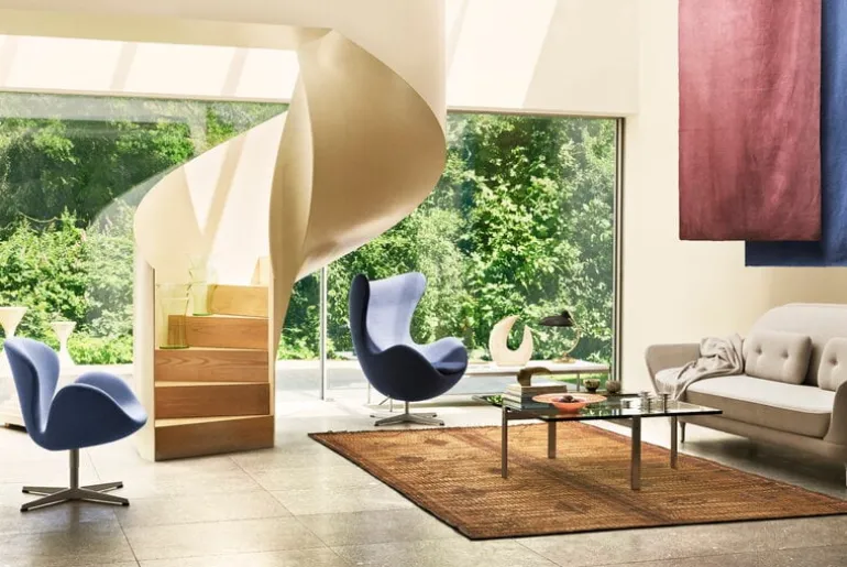 Fritz Hansens stol Egg är ett mästerverk av den danske designern Arne Jacobsen, känd som en av de mest berömda klassikerna inom skandinavisk design. Den ikoniska fåtöljen designades 1958 och har en distinkt, äggskalsliknande form som Jacobsen skapade genom att experimentera med gips och metalltråd i sitt garage. Den innovativa tekniken resulterade i fåtöljen Egg som har ett starkt innerskal av skum under klädseln. Stolen ger en bekväm och ergonomisk sittupplevelse, vilket gör Egg till den perfekta följeslagaren för att läsa, titta på TV eller helt enkelt bara koppla av i dess mjuka famn.