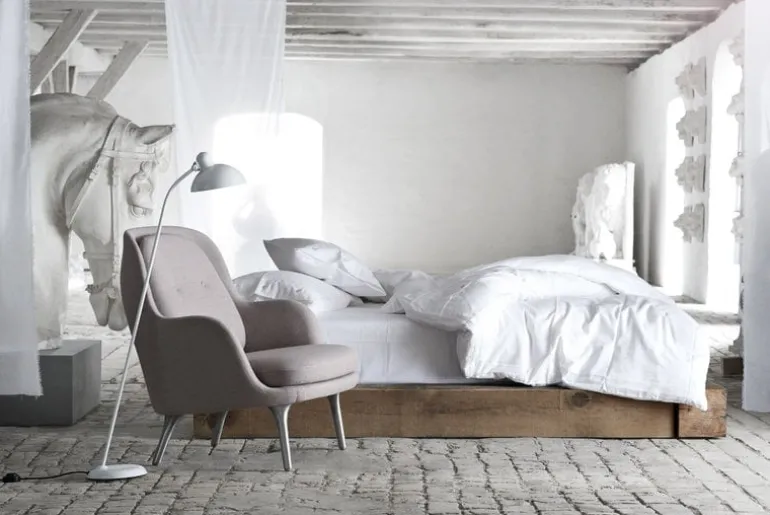 Fritz Hansens golvlampa Kaiser Idell är en funktionell och tidlös armatur som lånat sin form från en bordslampa skapad av Christian Dell. Lampans kungliga namn anspelar på dess originaltillverkare, det tyska företaget Gebr. Kaiser & Co, samt formgivarens efternamn kombinerat med ordet ”idea”, vilket resulterade i namnet Kaiser Idell. Golvlampan har en justerbar skärm som gör den passande för både stämningsbelysning och riktad belysning i sovrummet eller vardagsrummet.