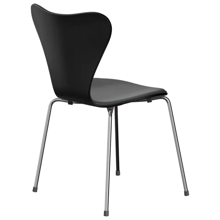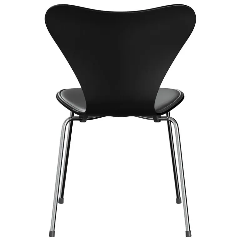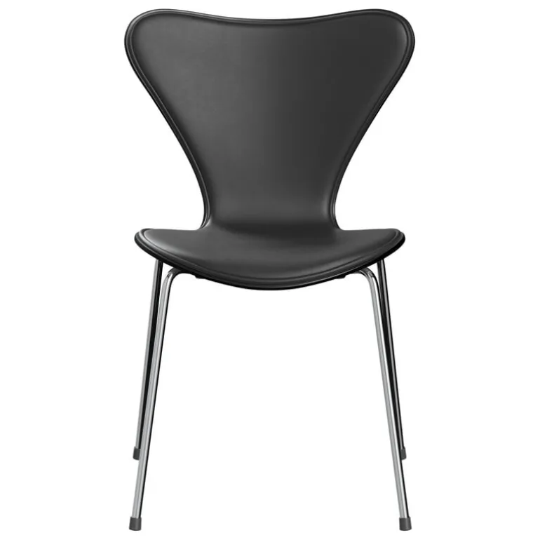 Den ergonomiska, ångböjda plywoodsitsen på stol 3107 består av nio lager askfanér. Fanérytan är klädd i lyxigt Essential-läder, som tillsammans med de förkromade stålbenen ger Series 7 3107-stolen ett elegant utseende som skänker skandinavisk sofistikation till alla utrymmen.