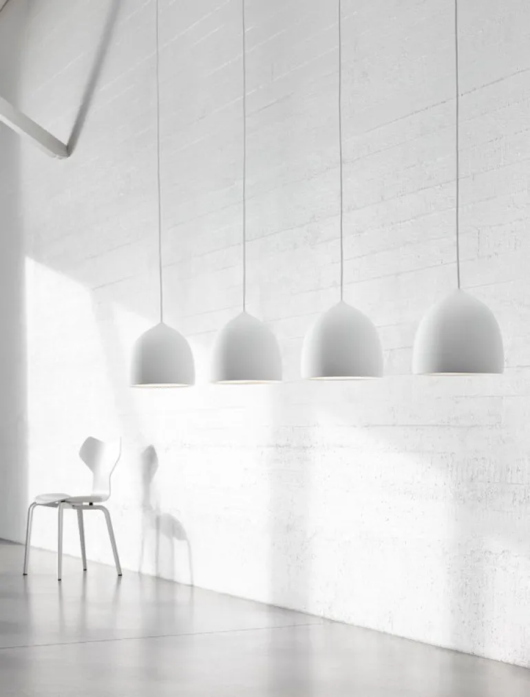 Pendellampan Suspence P2 från Fritz Hansen har en vacker aluminiumskärm med en form baserad på basala, fysiska rörelser: den lilla tippen på lampans topp ser ut som den skapats genom att någon dragit i sladden. Pendellampan är formgiven av GamFratesi och har en infinitydiffuser som koncentrerar ljuset, förhindrar bländning och skapar en optisk illusion av en öppen skärm. Med sin monokroma look och minimalistiska siluett är Suspence P2 väl lämpad för alla utrymmen och miljöer.