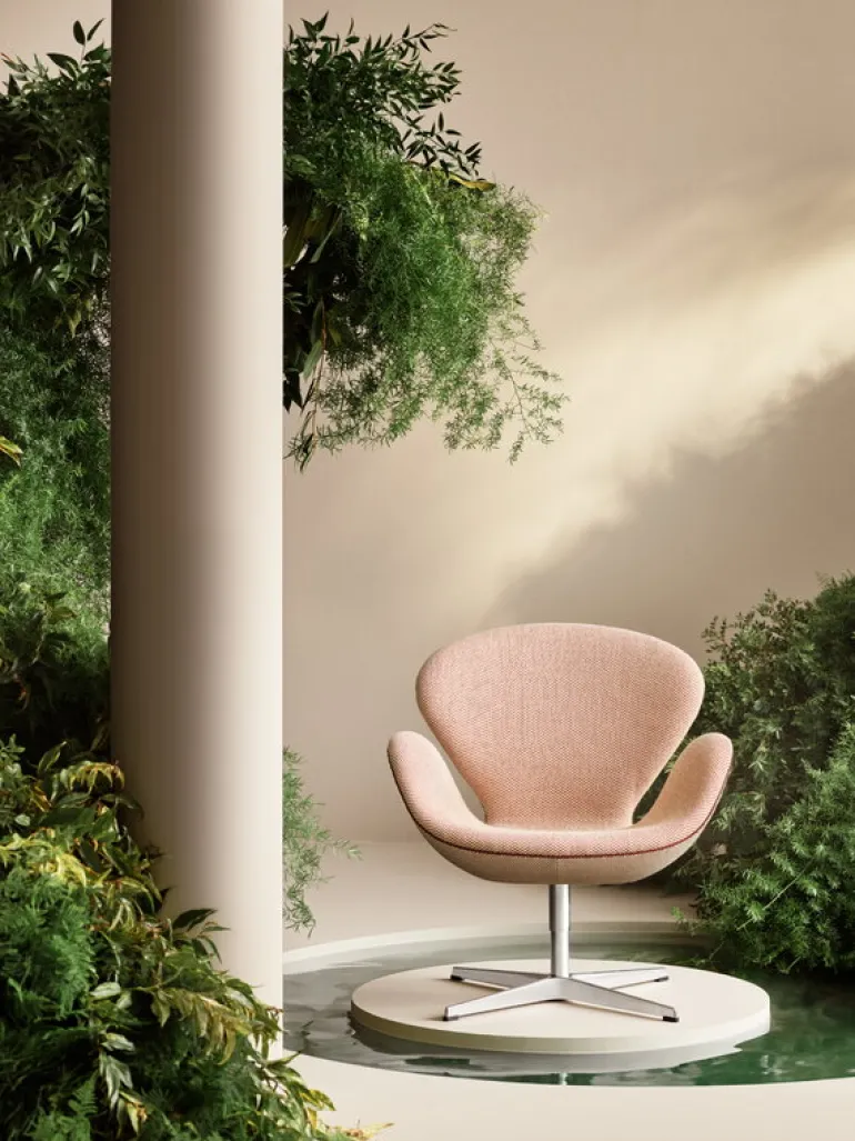 Fritz Hansens Swan 3320 loungestol kommer att charma både de som ser den och de som sitter på den. Den ikoniska fåtöljen, som ursprungligen designades av danska designern Arne Jacobsen för lobbyn och loungen på SAS Royal Hotel i Köpenhamn, charmar sin omgivning med dess milda, vänliga design – helt utan raka linjer. På 1950-talet var Swan-fåtöljen ett tekniskt underverk, med sin kurviga form som bröt sig loss från de raka och enkla linjerna hos den tidens traditionella fåtöljer.