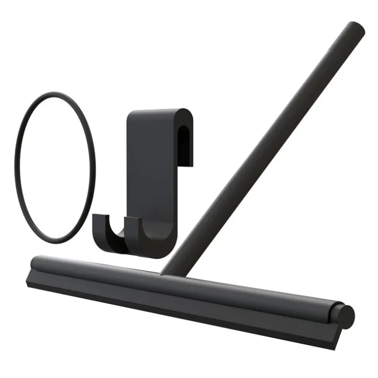 Nova2-duschskrapan från Frost tillför en touch av modern dansk funktionalism i badrummet. Skrapan medföljs av en gummikrok och ett band så att den kan hängas.