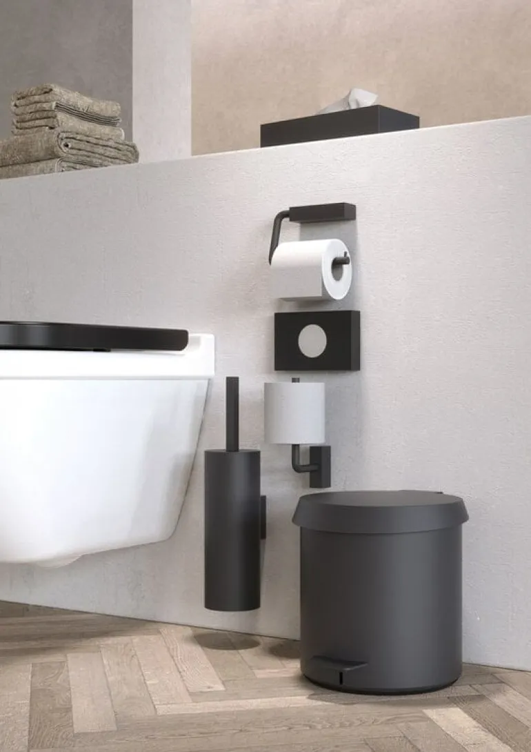 Nova2-servettlådan från Frost tillför en touch av modern dansk funktionalism i badrummet. Metallboxen är designad för 7 cm höga servettlådor.