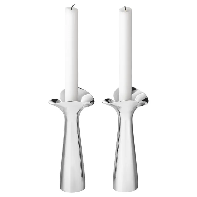 Georg Jensens effektfulla ljusstakar från kollektionen Bloom är designade av Helle Damkjær från Danmark, som skapat dem från en unik och handgjord design i lera. Den minimalistiska och organiska formen på Botanica värmeljushållare har fångat ögonblicket då en späd blomknopp slår ut i blom. Kontrasten med det blankpolerade stålet ger en effektfull look. De iögonfallande ljusstakarna ger en sofistikerad känsla på fönsterbrädan eller matbordet.