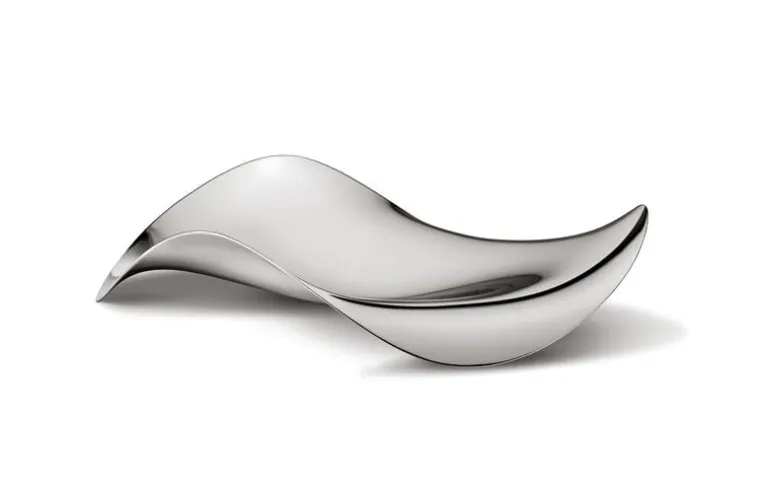 Georg Jensens Cobra-bricka drar blickarna till sig med sin fritt flödande form. Den kan användas som en imponerande serveringsskål eller som ett dekorativt inslag i inredningen.
