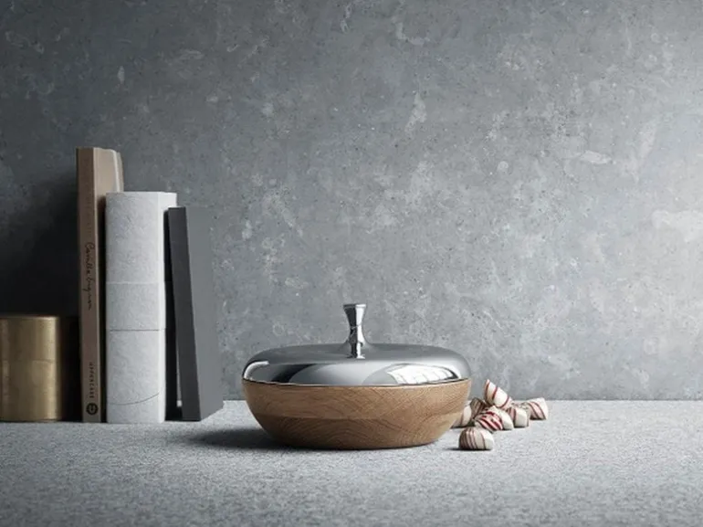 Inspirationen till Bonbonniere-kollektionen var silverserien Bonbonniere, skapad av Henning Koppel 1960. Den ursprungliga Bonbonniere-serien gjordes i silver och mörkt trä. Nu är Bonbonniere-serien uppdaterad och mixen av svalt rostfritt stål och varm ek ger den ett modernt utseende.
