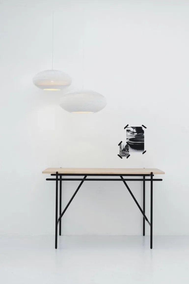 Disc är en del av Graypants kollektion Scraplights, som innehåller distinkta lampor gjorda av korrugerad kartong. Det helvita materialet, som är specialtillverkat, laserskärs och sätts ihop för hand med ett giftfritt lim till önskad form och avslutas med ett giftfritt brandskyddsmedel. Scraplights-pendellamporna är alla unika och hållbart tillverkade och de ger en naturlig, organisk touch till alla interiörer på egen hand eller i grupp.