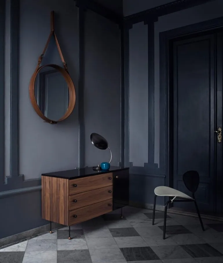 Adnet är en spegel av högsta kvalitet med vackert italienskt läder och detaljer i mässing. 1950 började Jacques Adnet samarbeta med det franska modehuset Hermès, där han utvecklade en kollektion med möbler och inredningsaccessoarer med läderdetaljer. Adnet-spegeln är från samma tid. Adnet var en av de första formgivarna som integrerade metall och glas som struktur- och dekorelement i möbler.