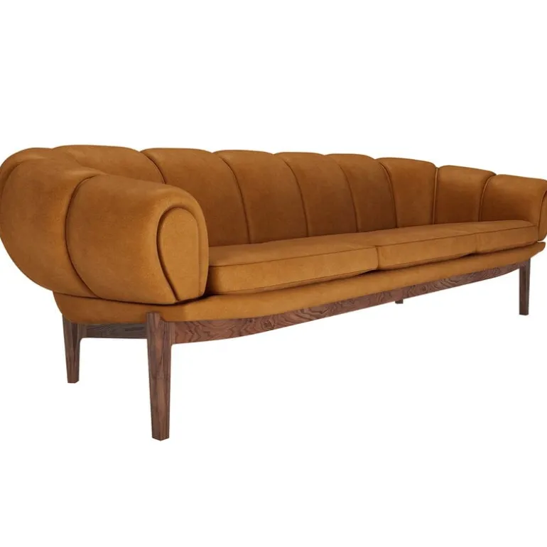 GUBI:s Croissant-soffa är designad av den danska arkitekten och designern Ilum Wikkelsø från mitten av 1900-talet, som ansåg att möbler skulle vara hållbara, skämma bort kroppen och glädja ögat. Ursprungligen designad 1962, representerar Croissant en mer lekfull och avslappnad tolkning av den traditionella Chesterfield-stilen.