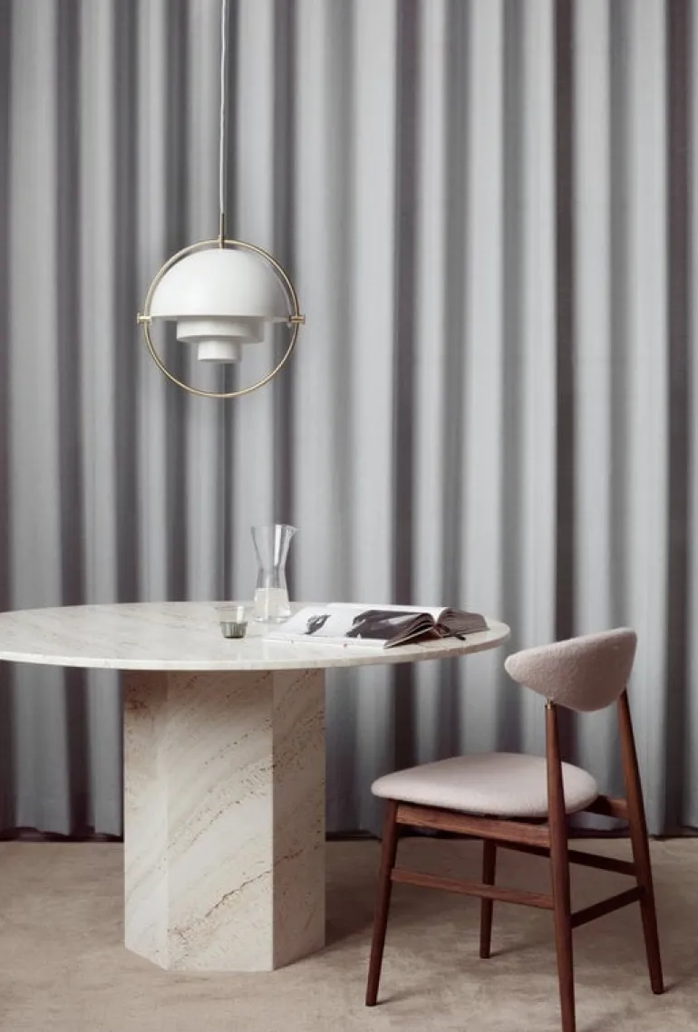 Matbordet Epic, som designades av GamFratesi för Gubi, är en uppfriskande modern tolkning av klassiska arkitektoniska element. Matbordet Epic har ett skulpturalt, till synes enkelt utseende som består av två geometriska former: en hexagon och en cirkel. Bordets moderna minimalistiska toner refererar på ett subtilt sätt till de ikoniska pelarna i antikens Grekland. Det monolitiska Epic-matbordet utgör sig på ett rättvist sätt till fokuspunkten i ett matbord, på terrasser eller allmänna utrymmen och inbjuder till lugn och stabilitet.