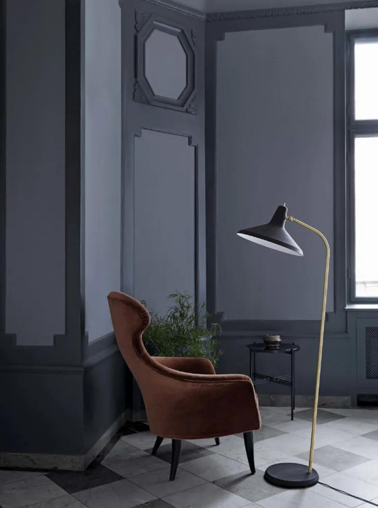 Golvlampan G-10 från Gubi är ett utmärkt exempel på Greta M. Grossmans utsökta design. Golvlampan G-10, som ursprungligen släpptes 1950, har en arm i mässingsfärgat stål och en bred, mjukt böjd skärm med en rå, industriell touch. Grossmans design har ofta en lekfull och humoristisk twist, och lampskärmen på G-10 sägs påminna om en populär hatt från 1950-talet. Grossman designade ursprungligen G-10-lampan för det svenska företaget Bergboms. I dag ges den ut av det danska märket Gubi.