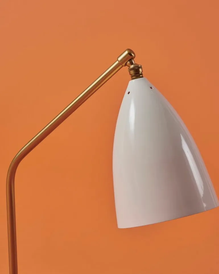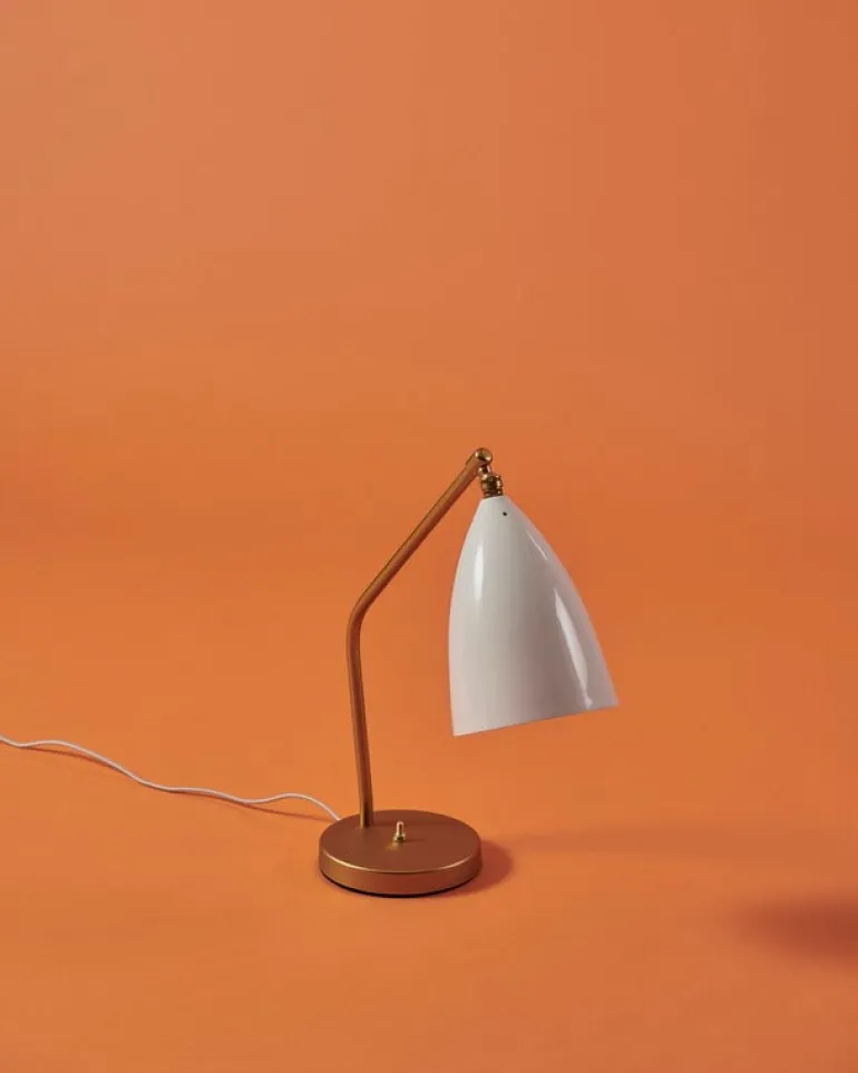 GUBI:s bordslampa Gräshoppa är baserad på en lampa designad av Greta Magnusson. Den ursprungliga Gräshoppa introducerades först som en golvlampa 1947 och återutgavs 2011. Gräshoppa bordslampa har samma tidlöst vackra klockformade skärm som golvlampan, tillverkad av polerat stål. Mässingsdetaljer fulländar lampans lyxiga utseende. Den eleganta bordslampan är idealisk för ett hemmakontor, vardagsrum eller som läslampa i ett sovrum.