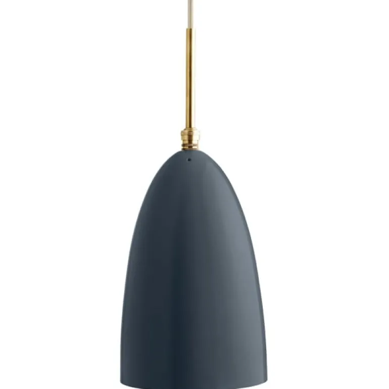 Gräshoppa-skärmen av Greta Grossman är fixerad med ett mässingsrör och mässingsbeslag i toppen. Skärmen är pulverlackerad och finns i 4 färger: mattvit, kolsvart, antracitgrå och blågrå.