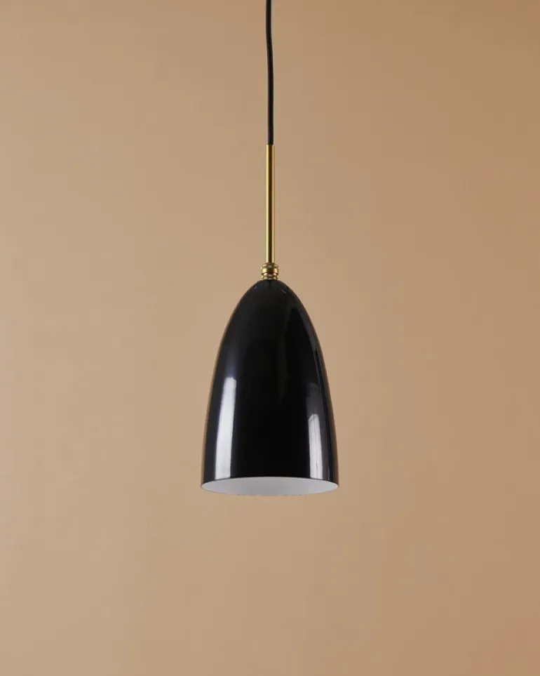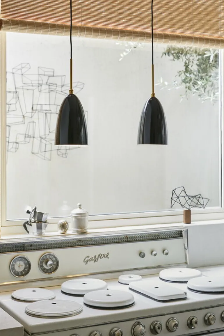 GUBI:s taklampa Gräshoppa baseras på en lampa som designades av Greta Magnusson. Den ursprungliga Gräshoppa introducerades först som en golvlampa 1947 och återutgavs 2011. Gräshoppa taklampa har samma tidlöst vackra klockformade skärm som golvlampan, tillverkad av polerat stål. Mässingsdetaljer fulländar taklampans lyxiga utseende. Den vackra taklampan passar perfekt i ett hemkök eller en matsal och ser även bra ut i offentliga utrymmen som restauranger, hotelllobbier eller konferensrum.