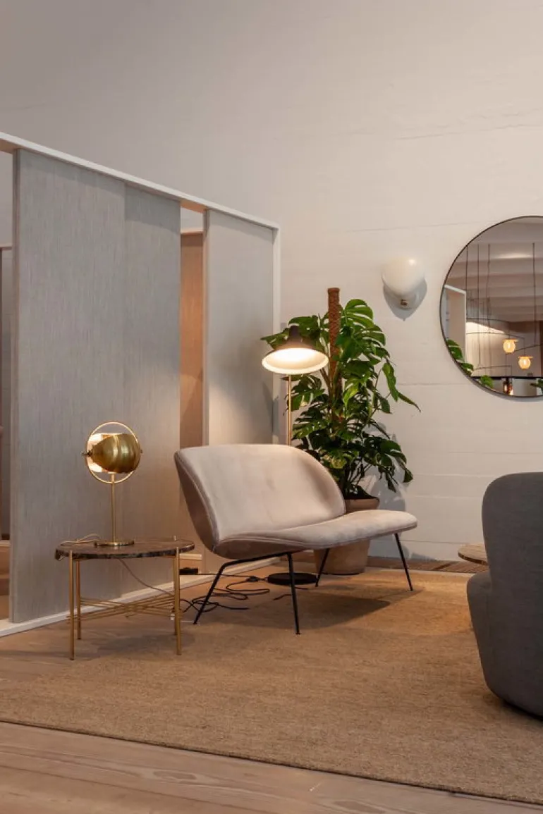 Den stora, runda spegeln Gubi tillför en extra dimension av ljus, rymd och design i rummet. Med sin stora diameter på 110 cm är Gubi-spegeln ett exklusivt men ändå rymligt och enhetligt element i både större och mindre rum. Förutom att vara en utmärkt hall- eller garderobsspegel är Gubi-spegeln även ett perfekt komplement till vardagsrumsväggen. Dess eleganta utseende kompletteras av en mässingsram.