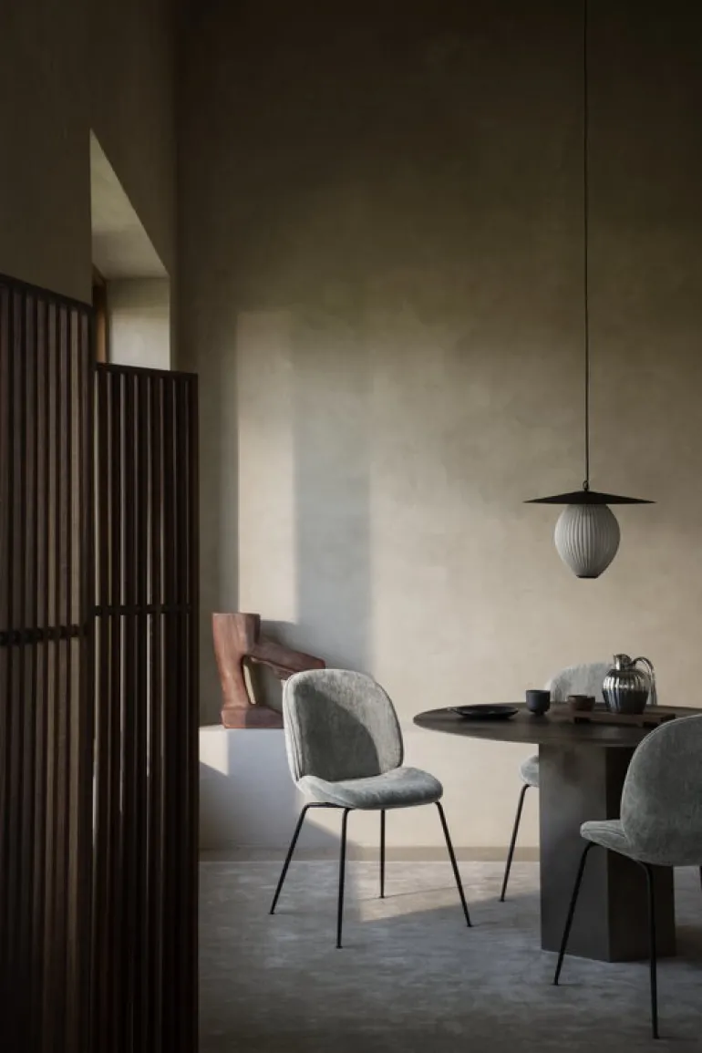 Gubi har återutgett den fascinerande Satellite-pendellampan som Mathieu Matégot designade 1953. Den lyktliknande pendellampan är ett resultat av Rigitulle, en teknik och ett material som uppfunnits av den franske designern själv: en metallplåt böjs och viks så att en avlång form bildas. Den perforerade och veckade metallskärmen skapar en illusion av mjukt tyg och filtrerar ljuset på ett underbart, festligt sätt. Satellite har en unik, färgglad design som genast hamnar i blickfånget. Dess namn är Matégots hyllning till de vetenskapliga framstegen i Frankrike efter andra världskriget.