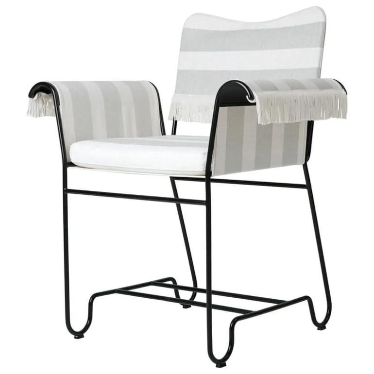 Utomhusstolen Tropique från GUBI utstrålar glamour och lyx som andas svunna tider. Utestolen, formgiven 1951 av Mathieu Matégot, består av en smäcker, lekfullt böjd metallram och kvalitetsklädsel för både inomhus- och utomhusbruk, som kompletterats med dekorativa fransar. En smärre avvikelse från Matégots ursprungsdesign är att klädseln går att byta, vilket förlänger stolens livslängd ytterligare.