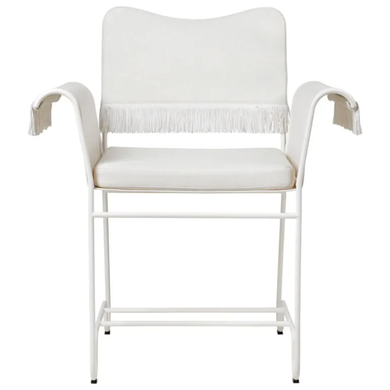 Utomhusstolen Tropique från GUBI utstrålar glamour och lyx som andas svunna tider. Utestolen, formgiven 1951 av Mathieu Matégot, består av en smäcker, lekfullt böjd metallram och kvalitetsklädsel för både inomhus- och utomhusbruk, som kompletterats med dekorativa fransar. En smärre avvikelse från Matégots ursprungsdesign är att klädseln går att byta, vilket förlänger stolens livslängd ytterligare.